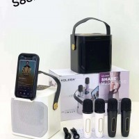 便携式 3000mAh 适用于 5.4 MP3 音乐 KTV 套装,带低音炮 USB/AUX 卡拉 OK 音箱 2 个麦克风,适合户外家庭聚会